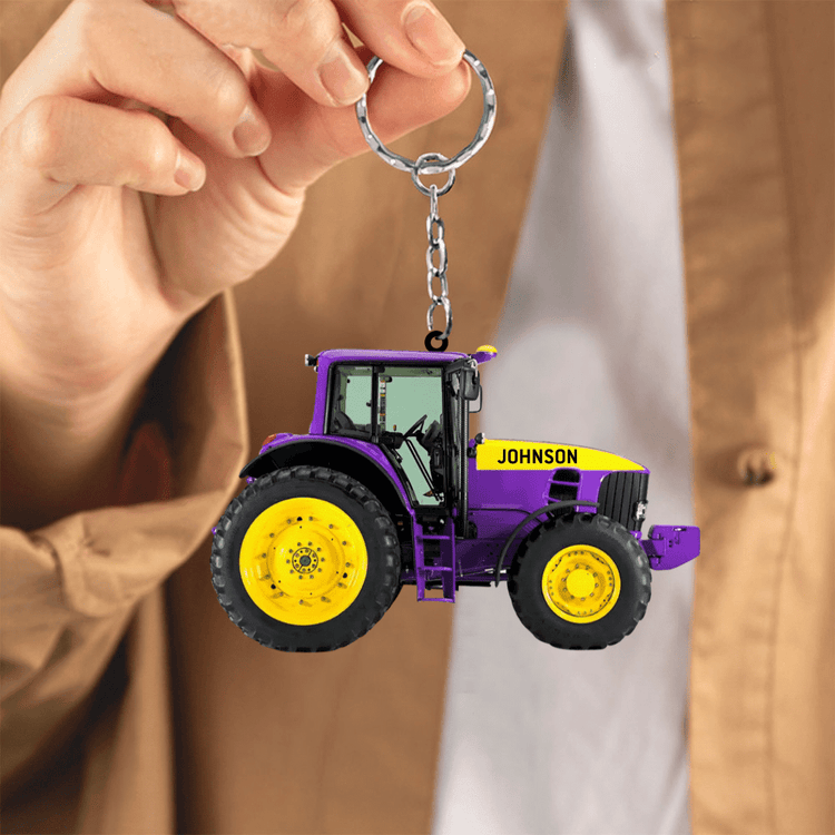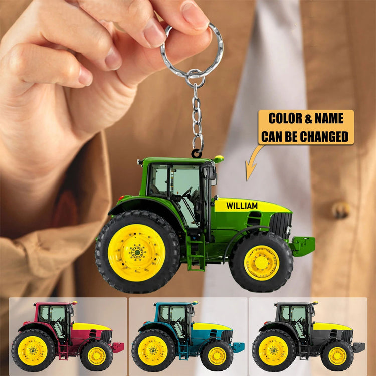 Personalized Tractor Keychain, Custom Name Tractor Driver Acrylic Keychain for Him