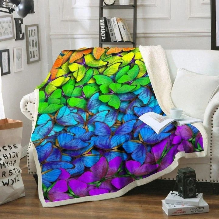 Lgbt Rainbow Color Butterfly Printed Sherpa Fleece Blanket