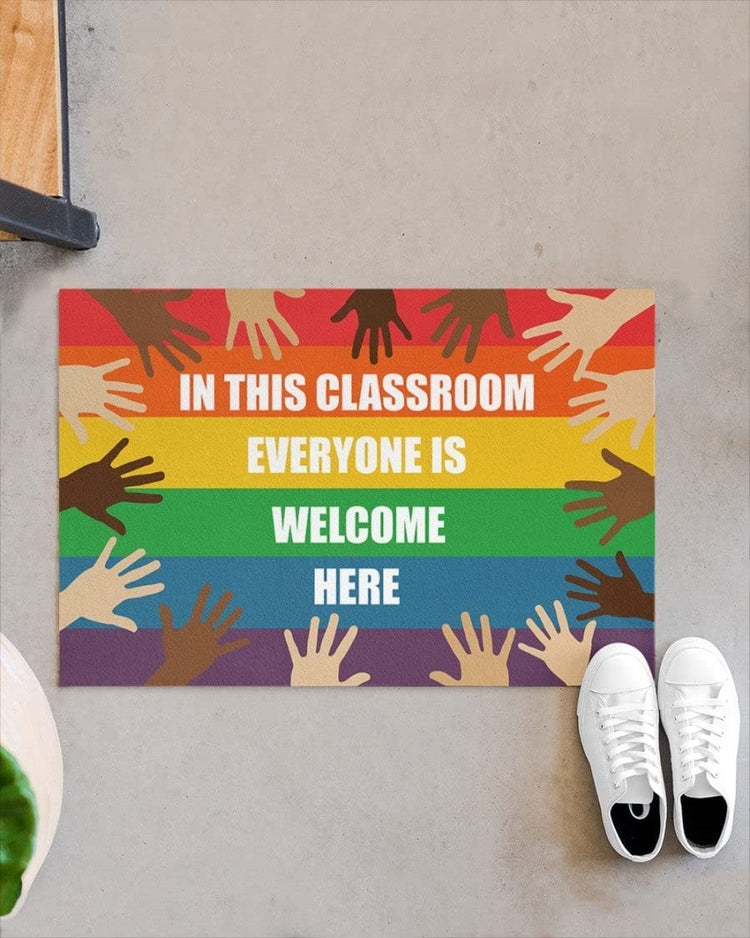 Home LGBT Doormat Lgbt Door Mat Indoor Entrance In This Classroom Everyone Is Welcome Here Indoor And Outdoor Pride Doormat