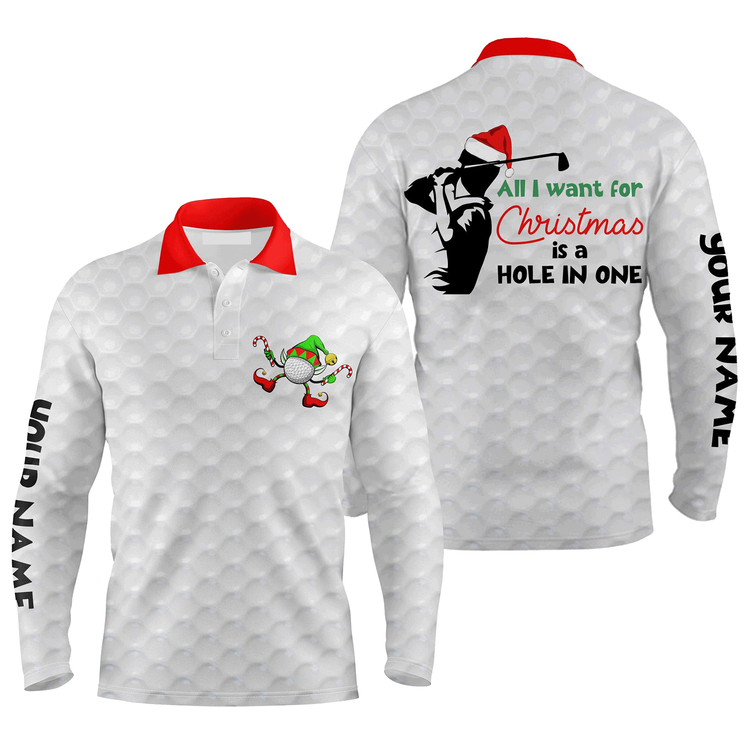 Custom Golf Long Sleeve Men Polo Shirt - Funny Christmas Golf , All I Want For Christmas Is A Hole In One Men Polo Shirt
