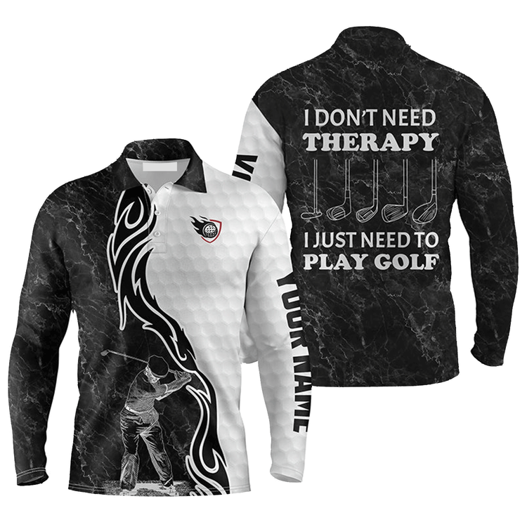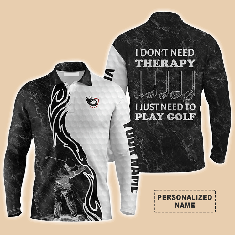 Custom Golf Long Sleeve Men Polo Shirt, I Don't Need Therapy, Perfect Gift for Golfer