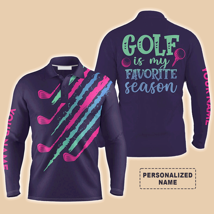 Custom Name Golfing Purple , Golf Is My Favorite Season Men Polo Shirt, Perfect Polo Shirt For Men, Golfers