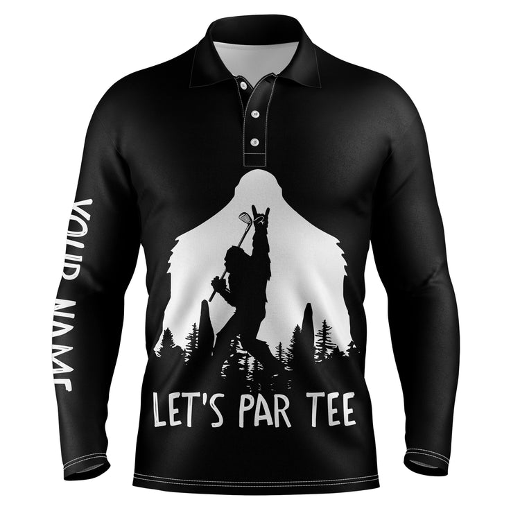 Funny Bigfoot Golf Shirts Mens Golf Long Sleeve Polo Lets Par Tee Custom Name Black Golf Shirt
