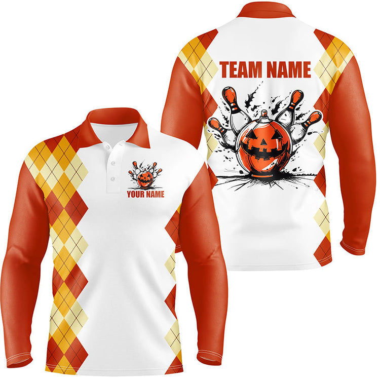 Halloween Orange Argyle Pattern Bowling Pumpkins Shirts For Men Custom Team Bowling Jerseys