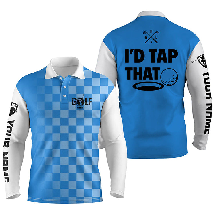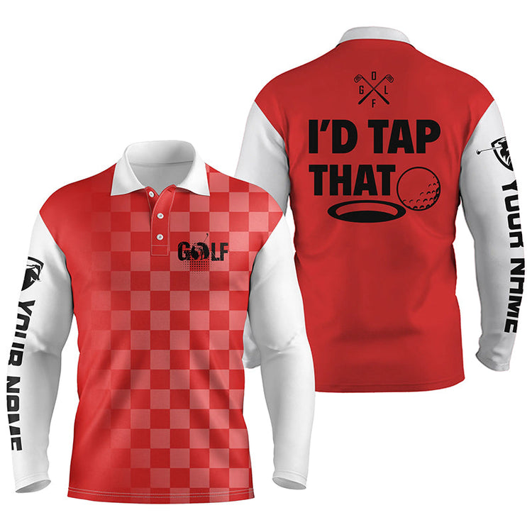 Mens Multi Color Golf Long Sleeve Polos Shirts Custom Name I'D Tap That Funny Golf Shirts For Men, Golfing Gifts