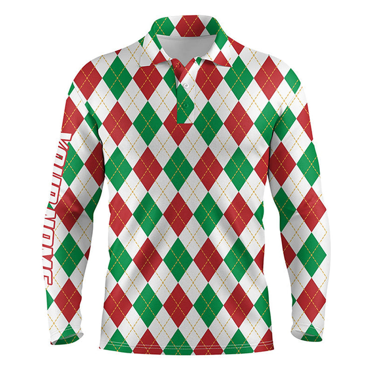 Personalized Christmas Plaid Argyle Pattern Men Golf Polo Shirts Custom Team Golf Polo Shirts