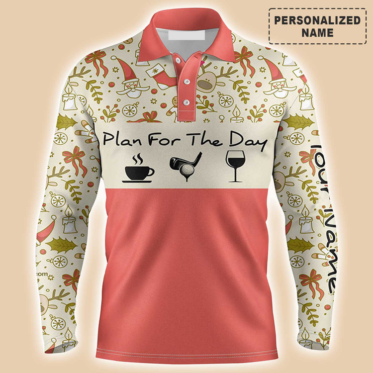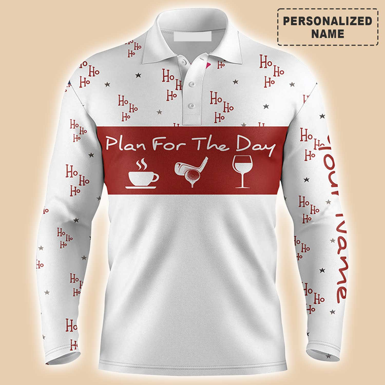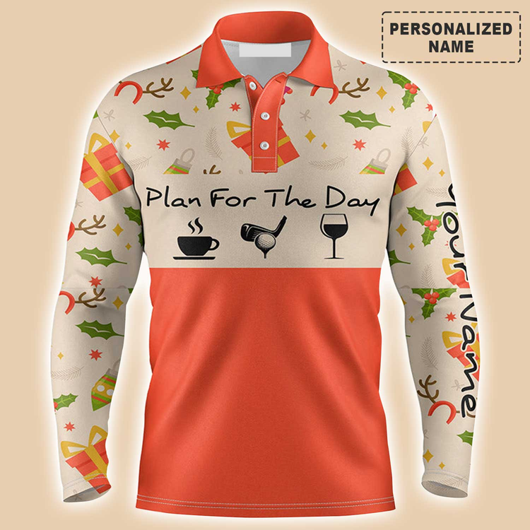 Personalized Plan For The Day Coffee Golf Men Long Sleeve Polo Shirt, Gift for Golfer
