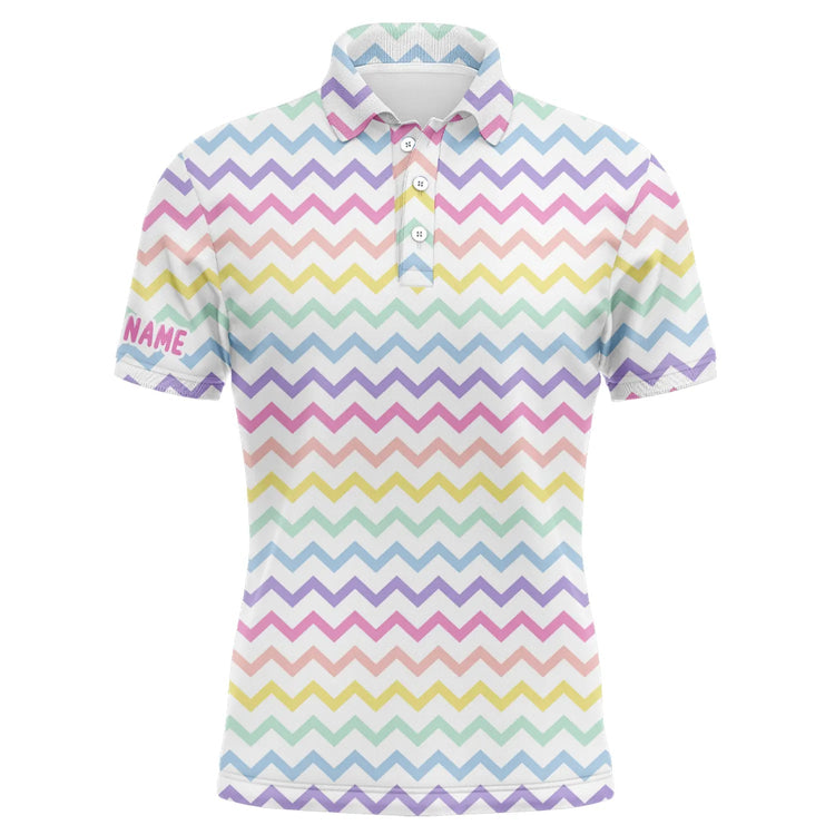 Rainbow Colors Pattern Golf Shirts Custom Name Mens Golf Polo Shirts, Mens Golf Polo Tops