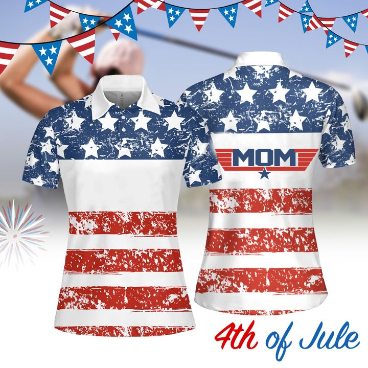 Home Mother's Day 3D Shirt American Flag Women Golf Apparels Women Short Sleeve Polo Shirt, Gift for Mother's Day