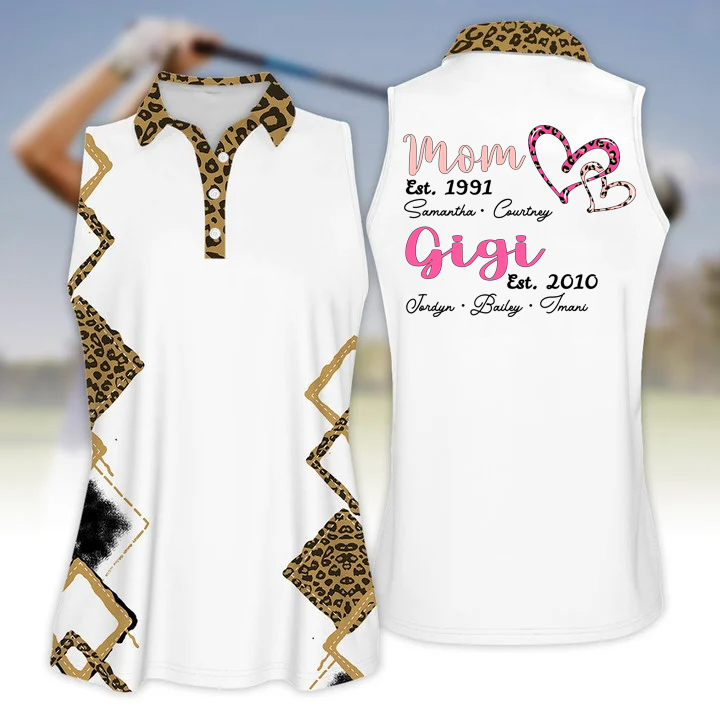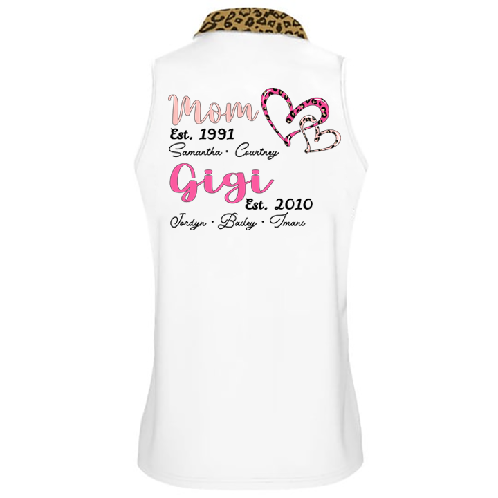 Mom Est Kid Grandma Est Grandkids Heart Leopard Sleeveless Polo Shirt, Personalized 3D Shirt