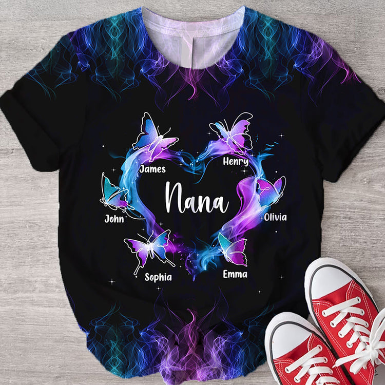Personalized Colorful Heart Butterflies T-Shirt Gift For Grandma, Mom