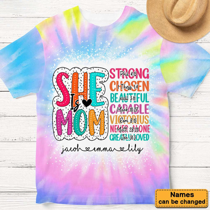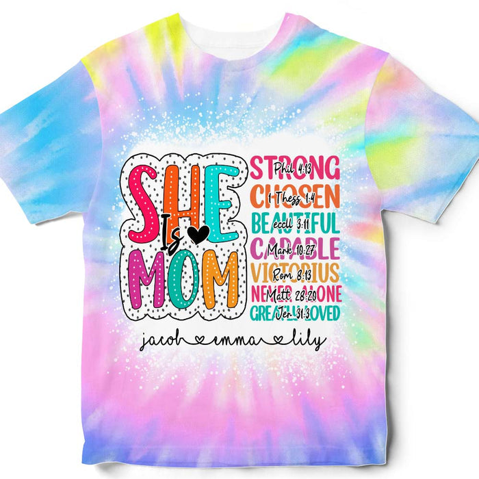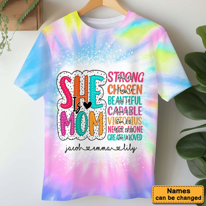 She Is Mom, She Is Strong - Personalized 3D Printed Shirt - Gift For Mom, Grandma, Grandmother, Mothers Day