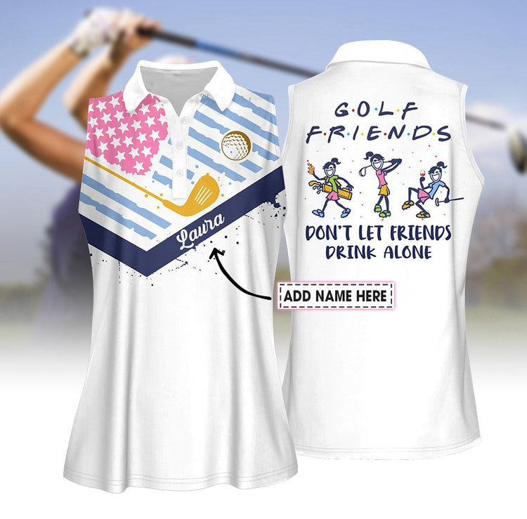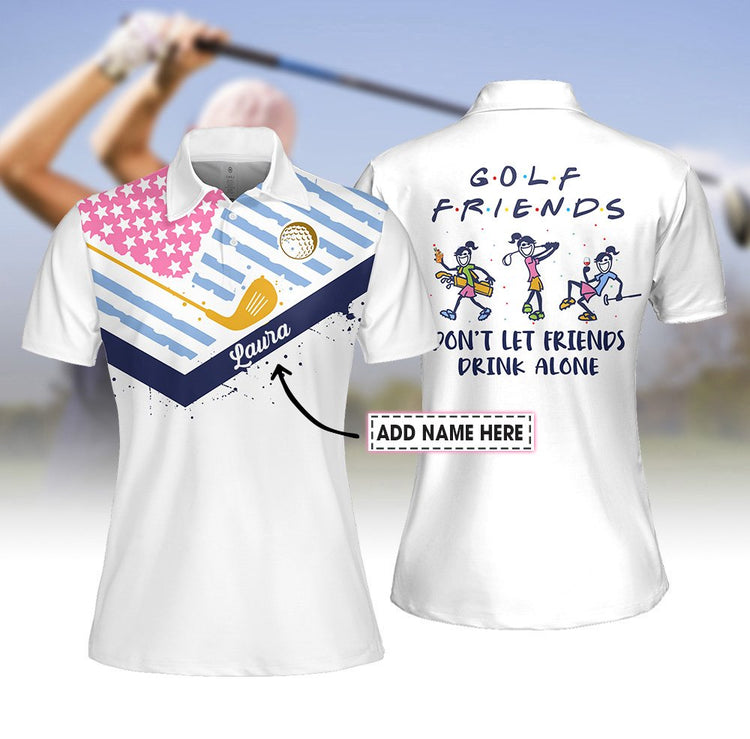 Personalized Name Golf Friends Don’t Let Friends Drink Alone Women Polo Shirt