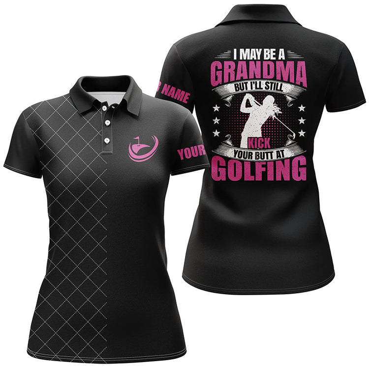 Home Sleeveless Polo Shirt Black Women Sleeveless Polo Shirt Custom I May Be A Grandma But I'll Still Kick Your Butt At Golfing