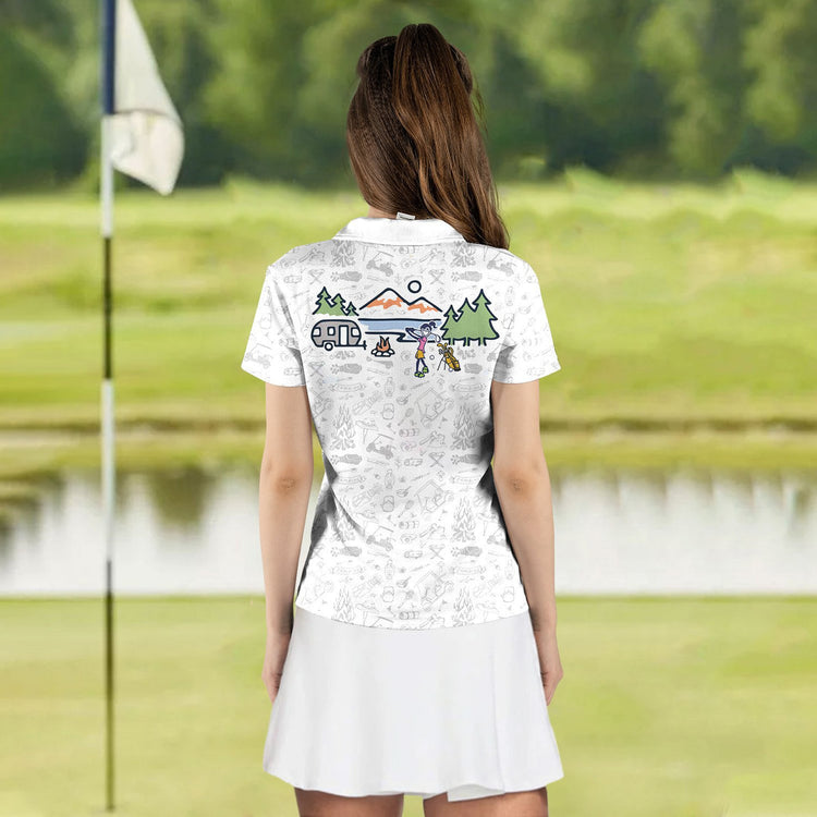 Customized Name Golf And Camping Pattern Women Polo Shirt, Golf Day Sleeveless Polo