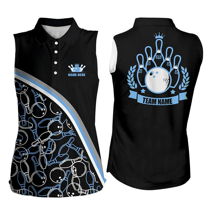 Personalized Bowling Sleeveless Polo Shirt For Women Custom Multi Color Bowling Pattern Team Shirts