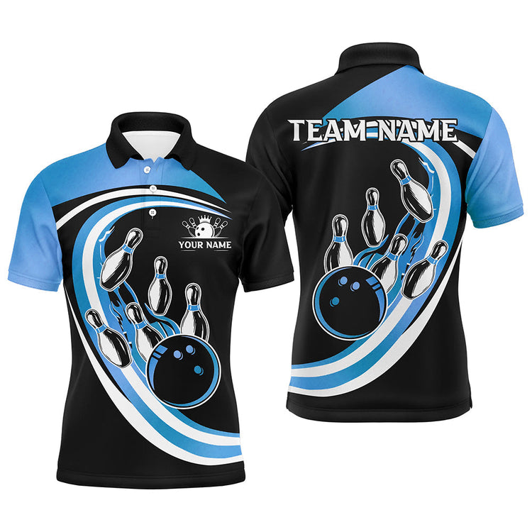 Black & Blue Bowling Polo, 1/4 Zip Shirts Custom Bowling Team League Jersey, Gift For Bowler