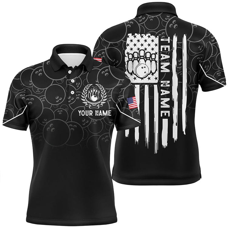 Black Bowling Polo Bowling Shirts Custom American Flag Patriotic Bowling Team League Jerseys For Men And Women