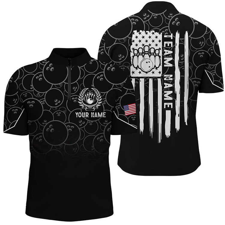 Home Bowling Jersey Black Bowling Polo Bowling Shirts Custom American Flag Patriotic Bowling Team League Jerseys For Men And Women