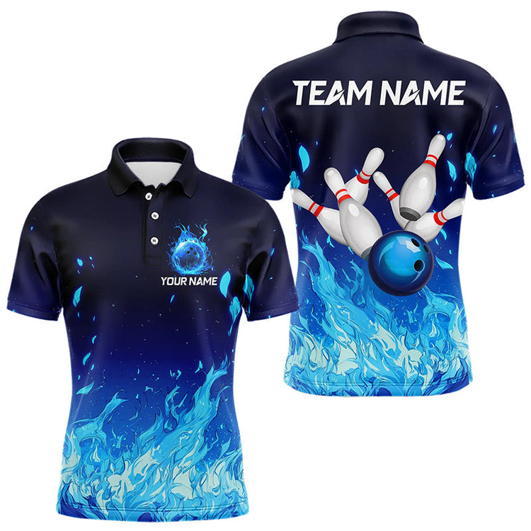Blue Flame Fire Bowling Polo, Quarter Zip Shirts for Men Custom Bowling Team jerseys, Bowling Outfits