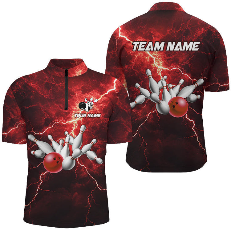 Bowling Shirts Custom Red Lightning Thunder Bowling Team Jersey, Gift For Team Bowlers