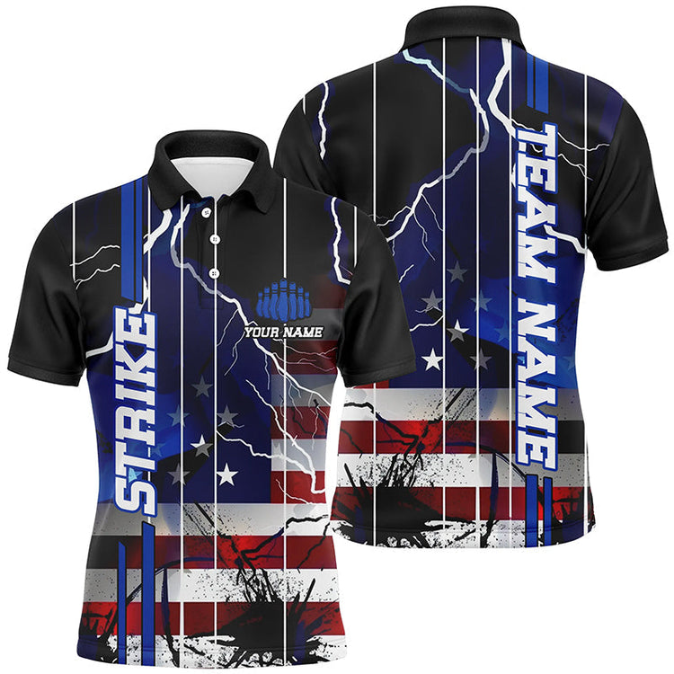 Custom American Flag Lightning Strike Bowling Shirts For Team, Patriotic Bowling Jerseys