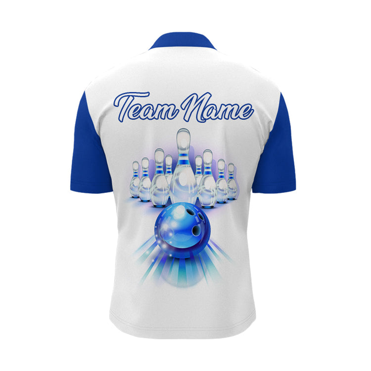 Custom Bowling Quarter Zip Shirt for Men Blue Bowling Jersey Bowling Team League Shirt, Gift for Bowling Lovers