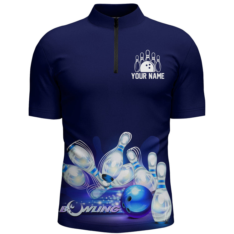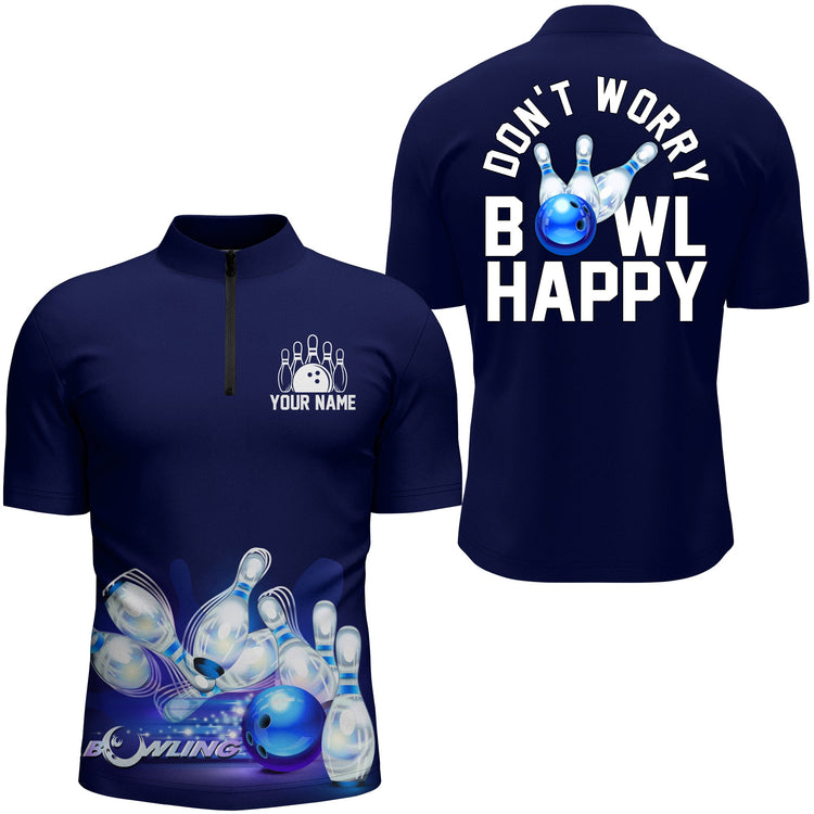 Custom Bowling Shirt for Men, Don't Worry Bowl Happy, Blue Bowling Quarter-Zip Shirt Men Bowlers