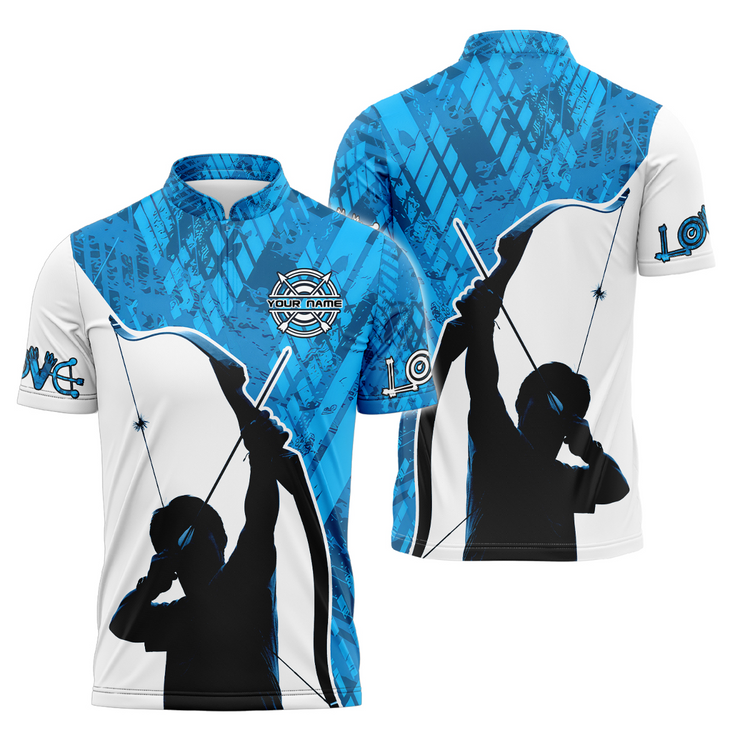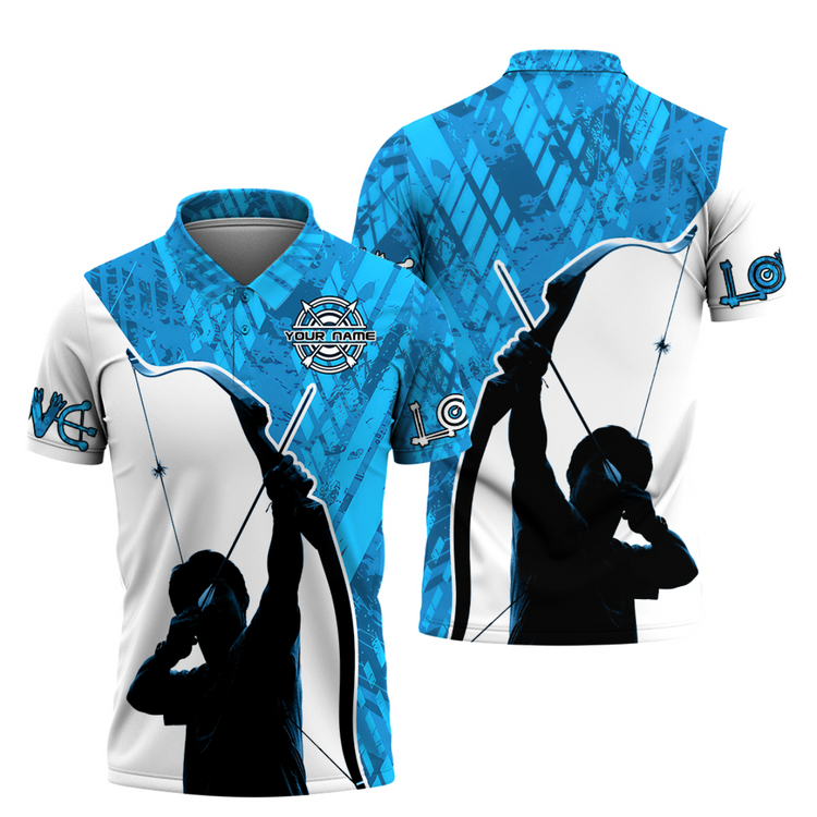 Custom Name Blue Archery Jersey Shirt, Archer Polo Shirt , Gift for Archery Lovers