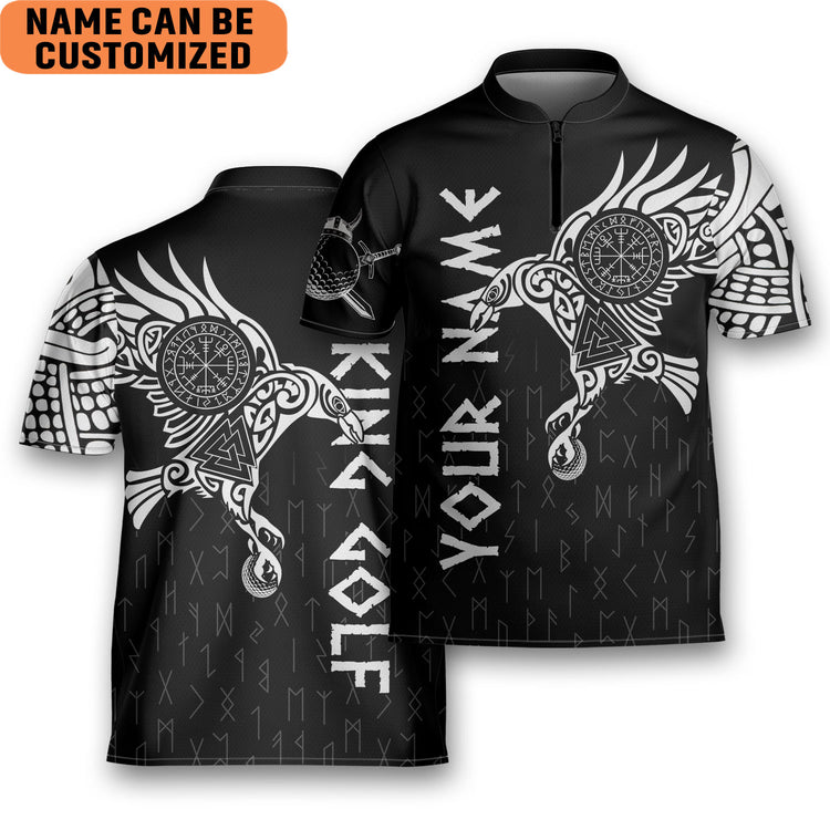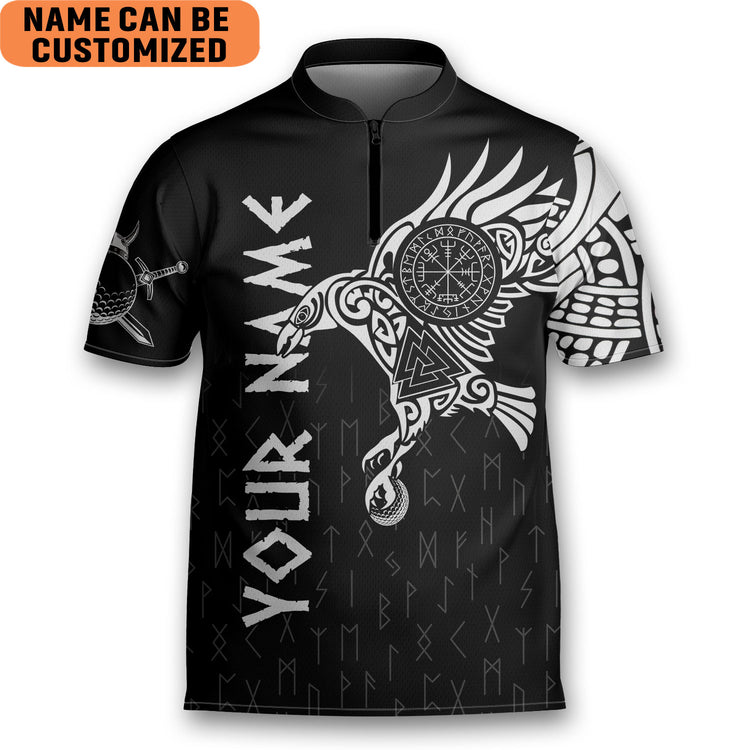 Custom Name Raven Viking Tattoo Art Golf Golfer Golfing Mandarin Zipper Jersey