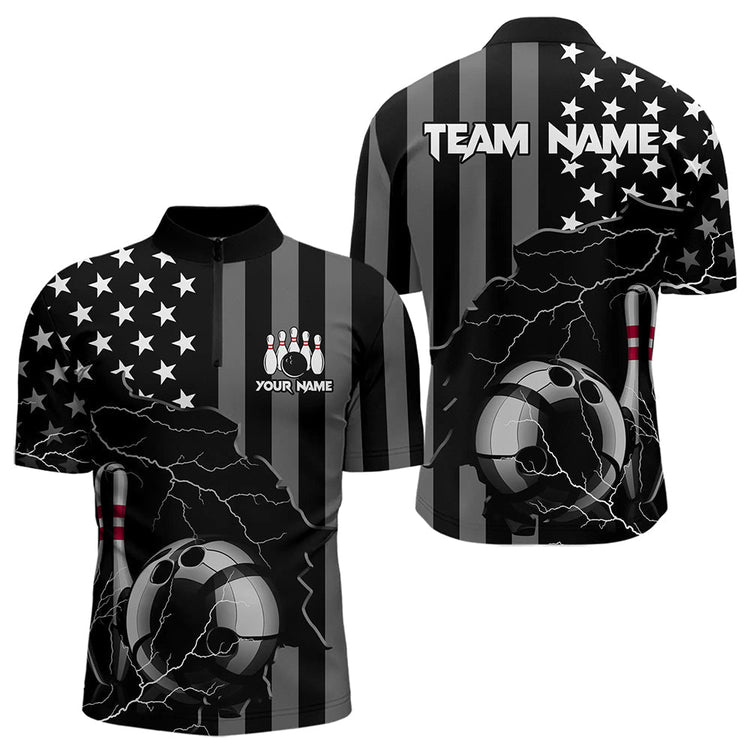 Personalized Black American Flag Lightning Thunder Custom Bowling Team Shirts For Mens Bowling Jersey