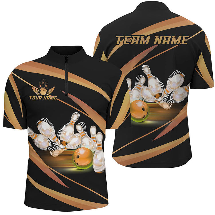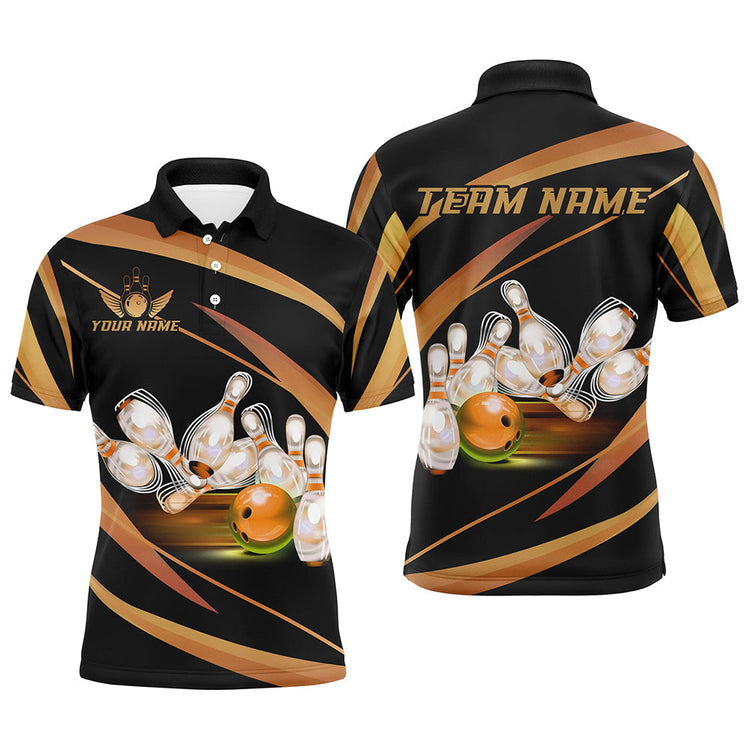 Personalized Black And Gold Bowling Shirts, Custom Team Bowling League Jerseys