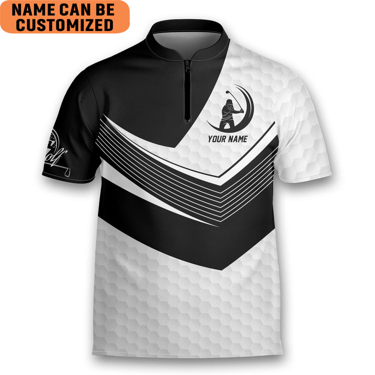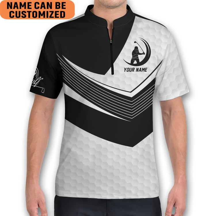 Personalized Love Golf Black and White Golfing Mandarin Zipper Jersey