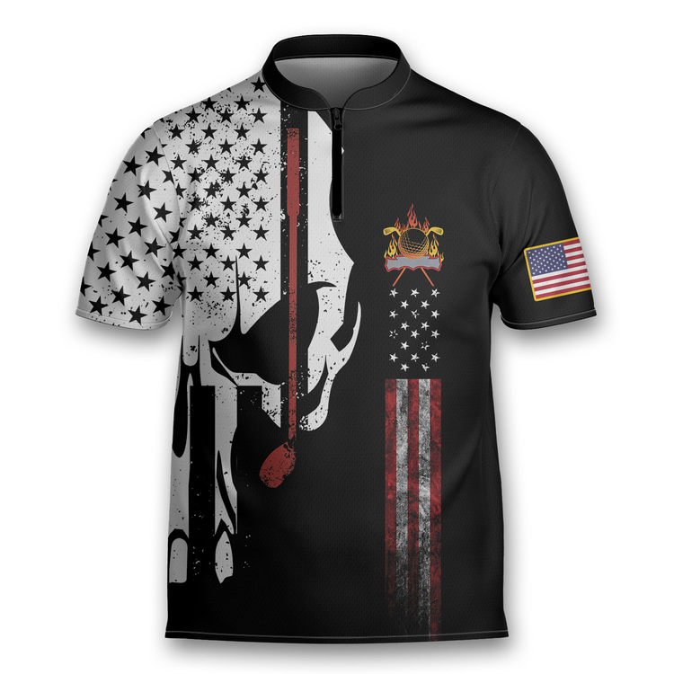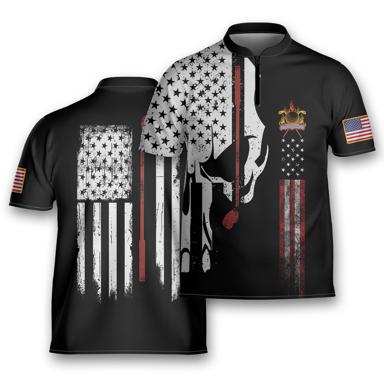 Skull American Flag With Golf Club Golfing Mandarin Zipper Jersey
