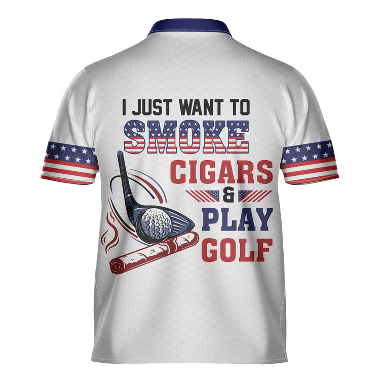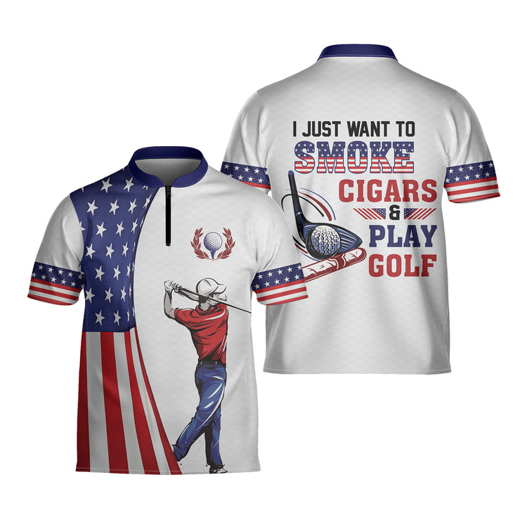 USA Flag Cigars And Golf Style Custom Name Golfing Mandarin Zipper Jersey 3D Polo