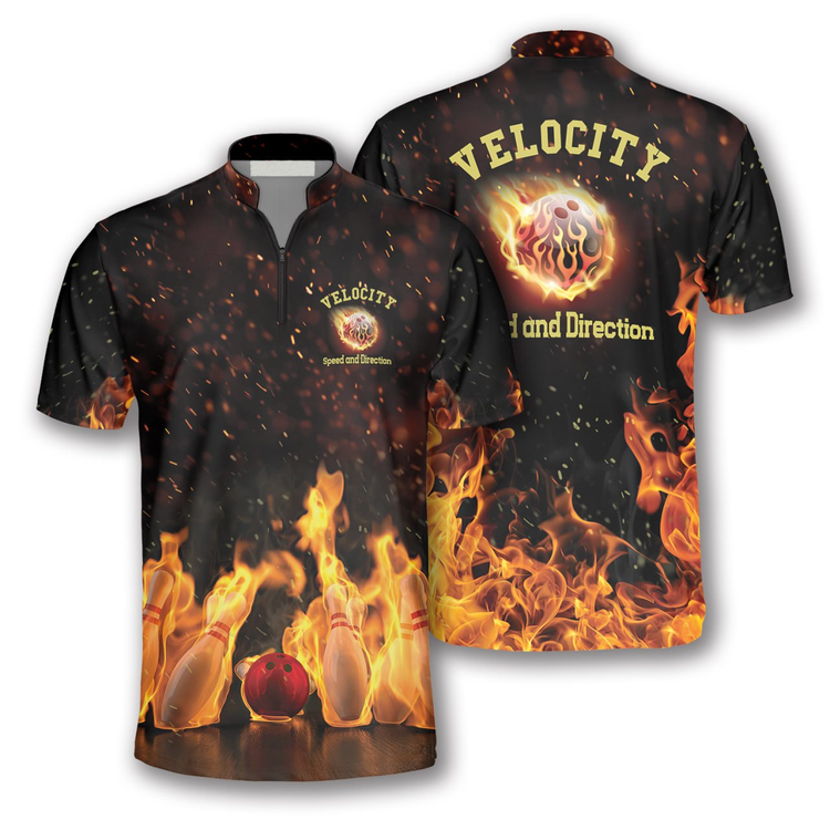 Velocity Fire Flame Custom Bowling Jerseys for Men, Bowling Fire Shirt for Bowler