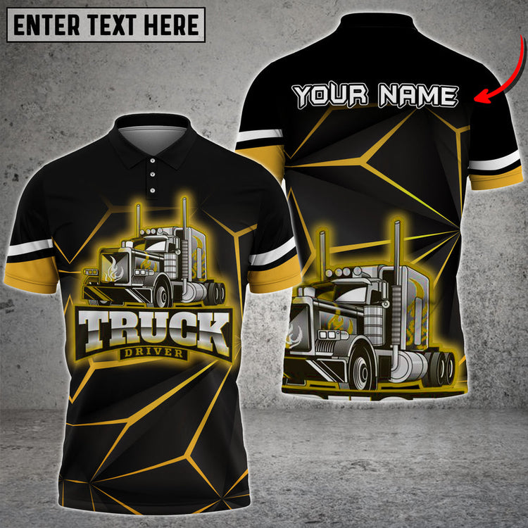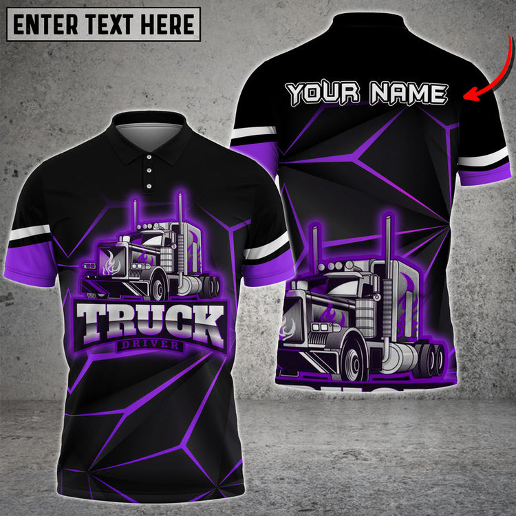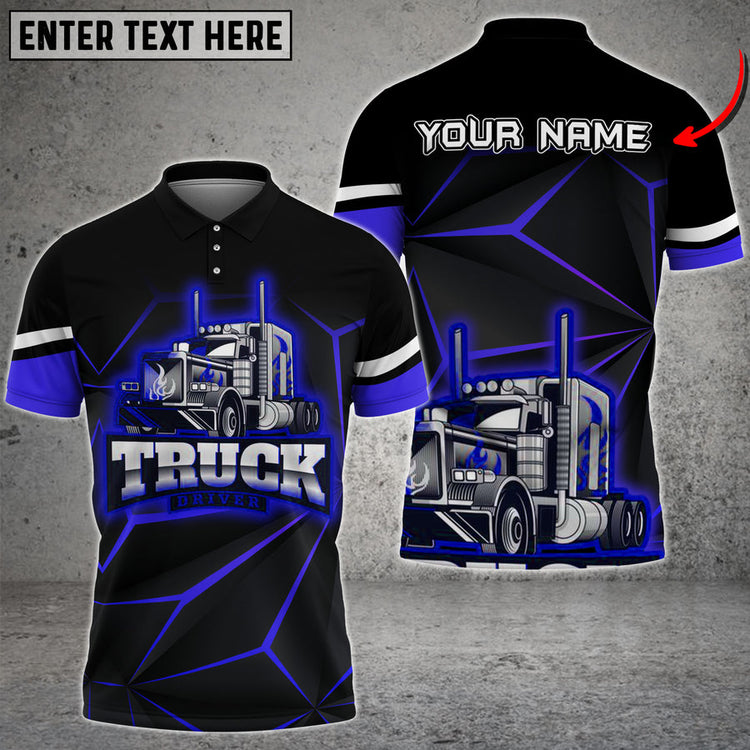 Multicolor Truck Neon Light Pattern Personalized Name 3D Polo Shirt For Truck Driver