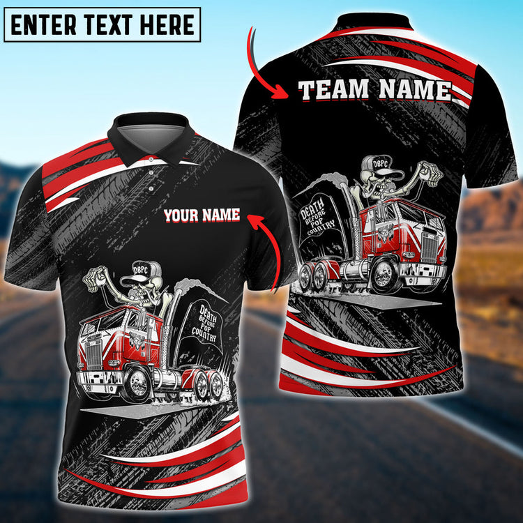 Truck Breath of Fire Skull Personalized Name Shirt For Truck Driver, Trucking Gift 3D Polo Shirt