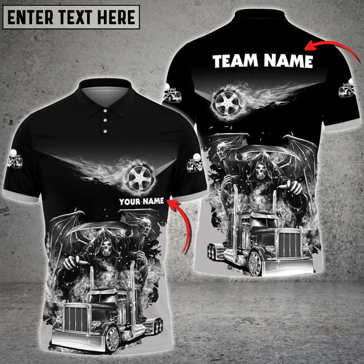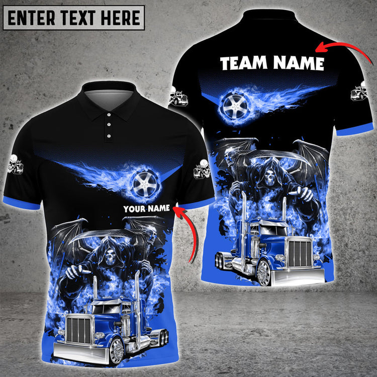 Truck Chasing Flame Skeleton Multicolor Personalized Name Polo Shirt For Truck Driver