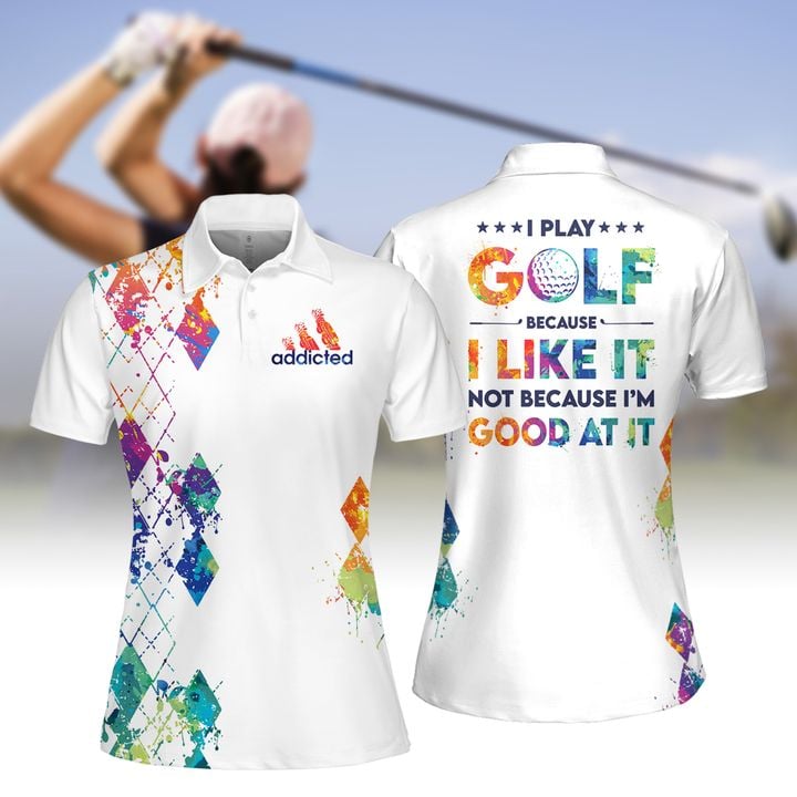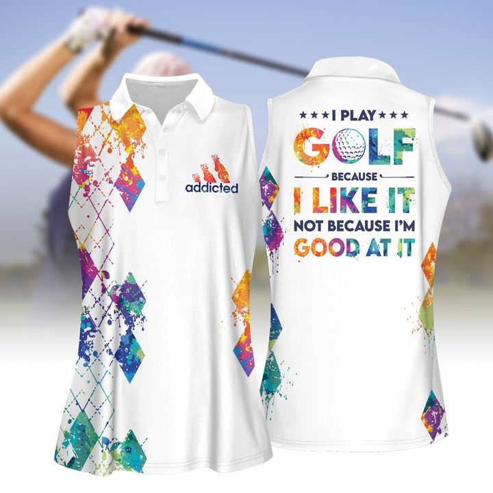 Home Womens Sleeveless Golf Shirts Argyle Style I Play Golf Because I Like It Not Because I'm Good At It Women Short Sleeve Polo Shirt, Sleeveless Polo Shirt
