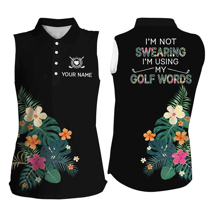 Black Womens sleeveless polo shirt custom name I am not swearing I'm using my golf words