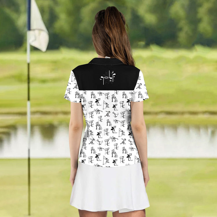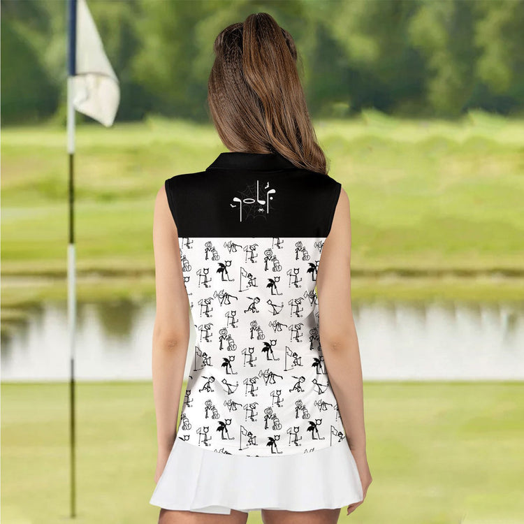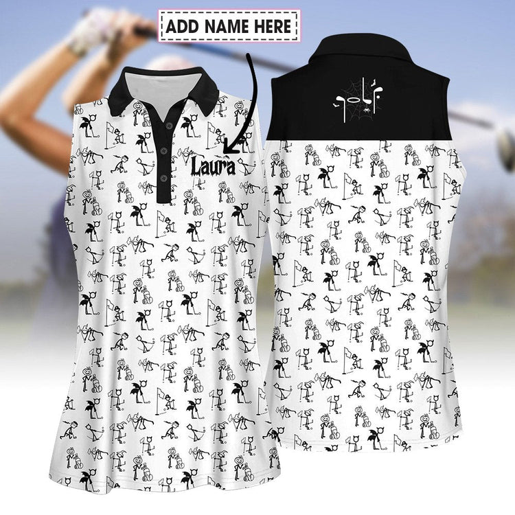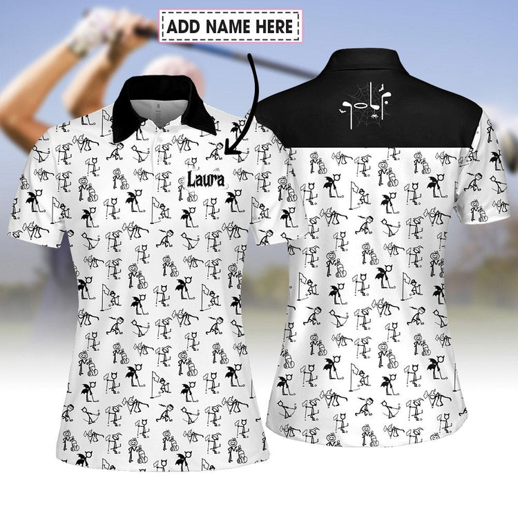 Custom Name Stickfigures Halloween Playing Golf Women Polo Shirt