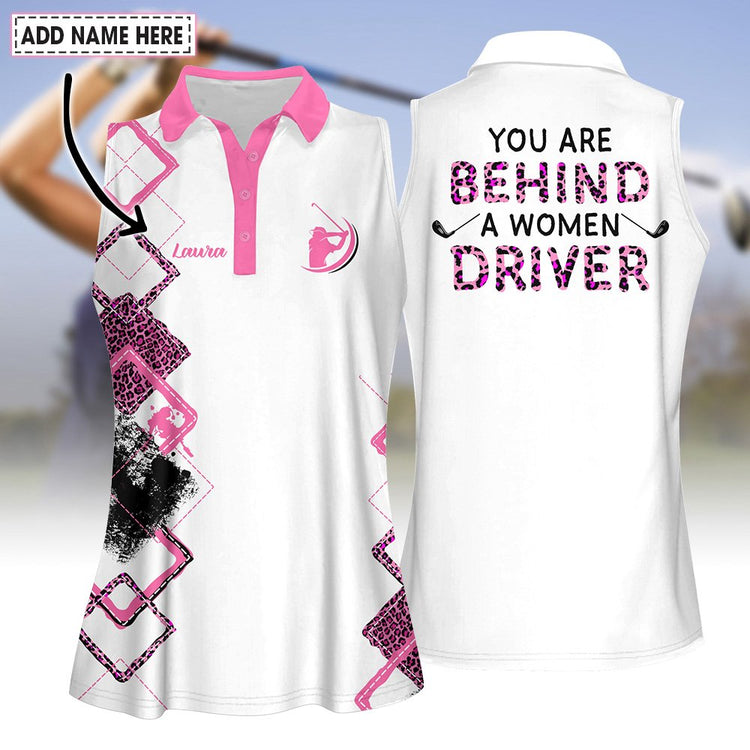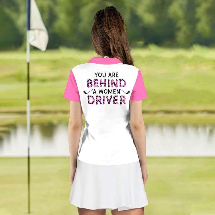 Custom Name You Are Behind A Women Driver Women Golf Polo Shirt