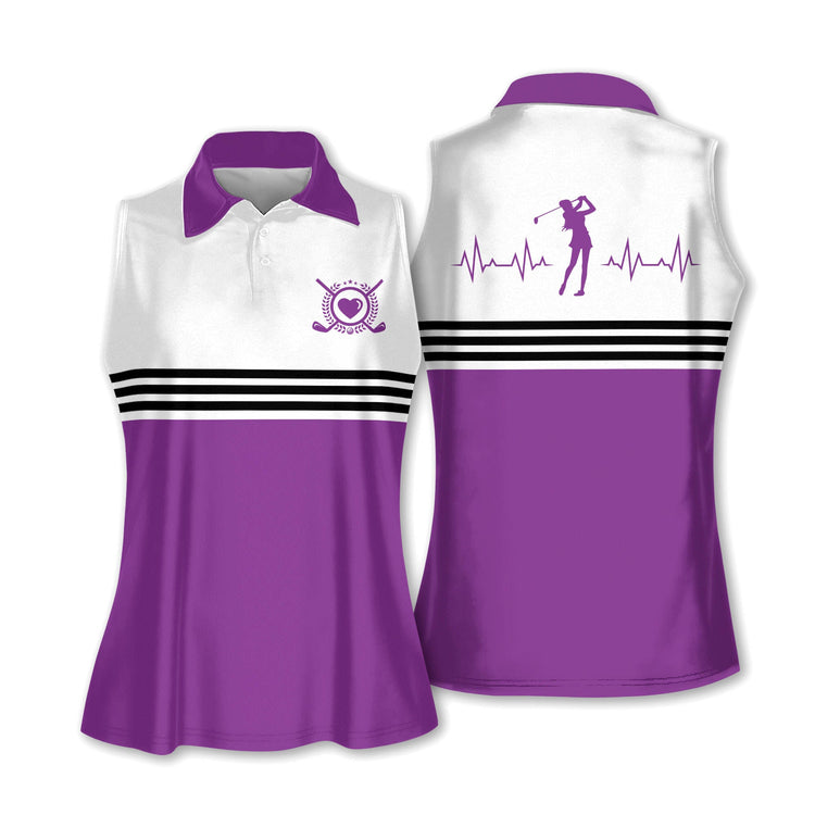 Home Womens Sleeveless Golf Shirts Golf Heart Beat multicolor Sleeveless Polo Shirt for woman