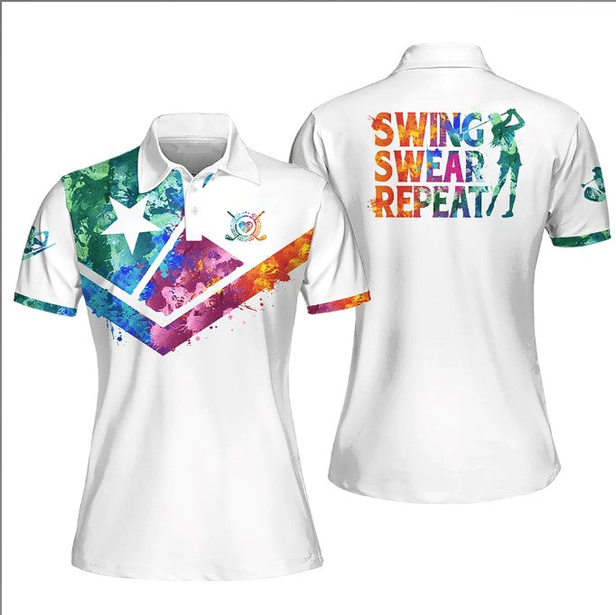 Golf Watercolor Swing Swear Repeat Texas Flag Golf Sleeveless Polo Shirt for Women