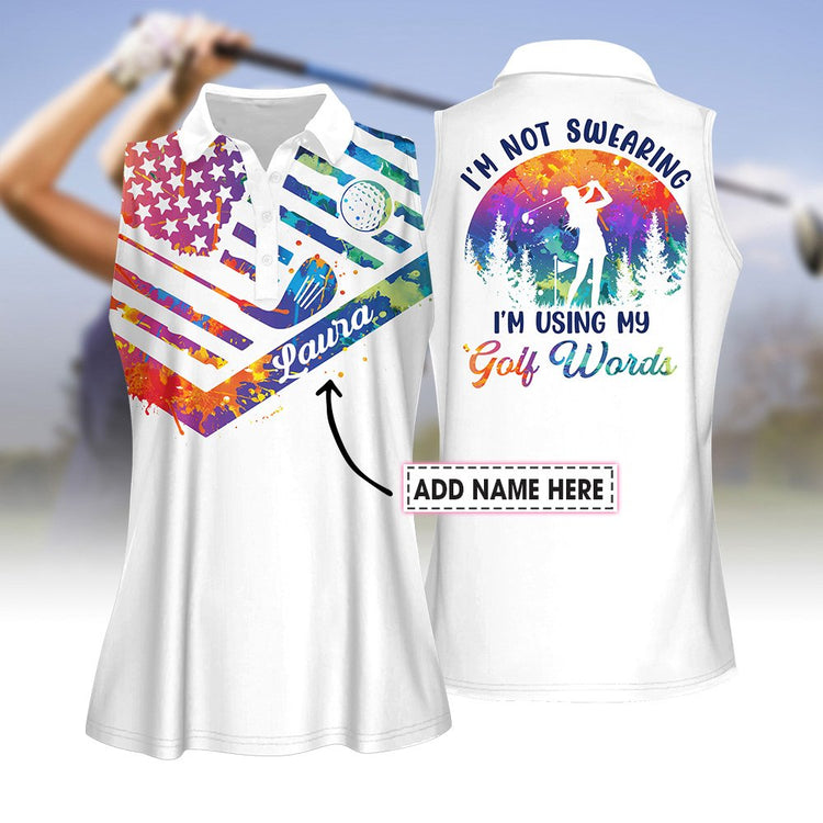 Home Womens Sleeveless Golf Shirts I'm Not Swearing I'm Using My Golf Words Water Color Women Polo Shirt