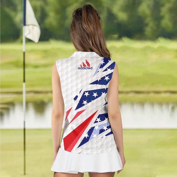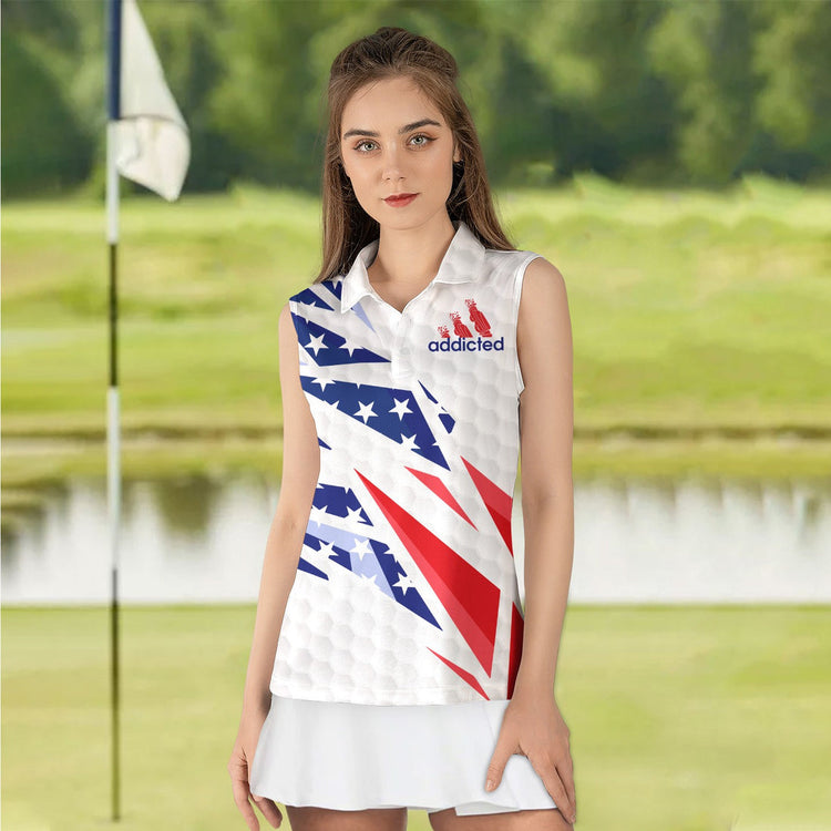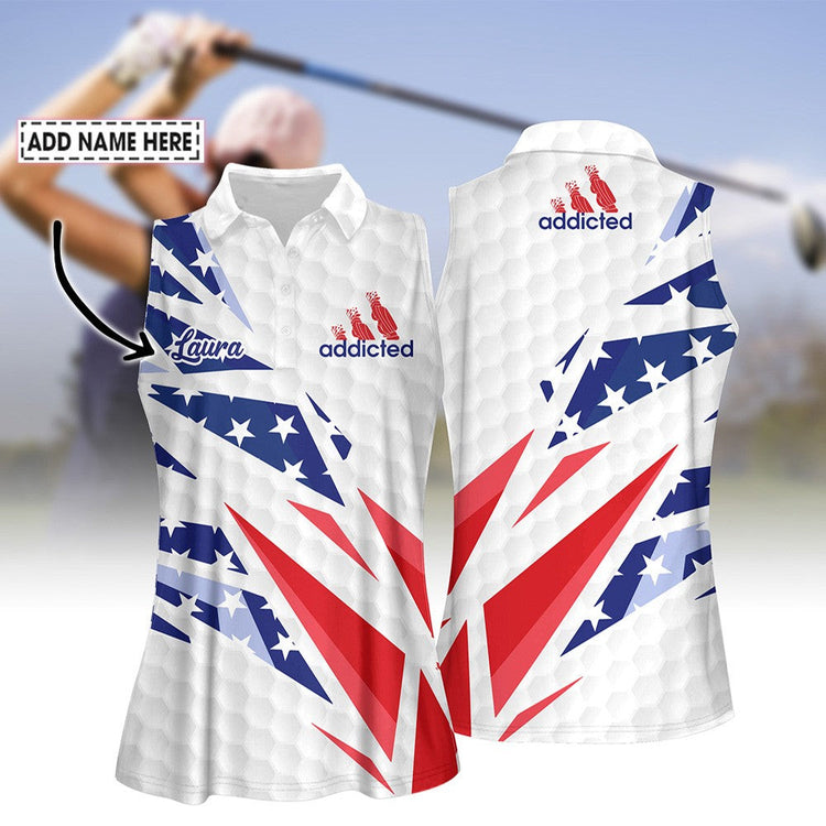 Home Womens Sleeveless Golf Shirts Personalized Name Addicted American Flag Abstract Women Golf Polo Shirt