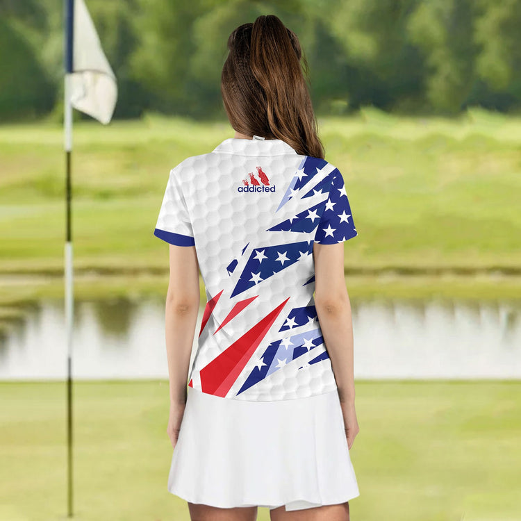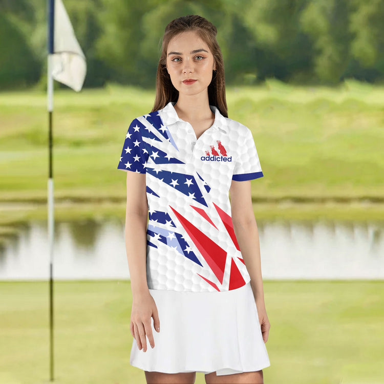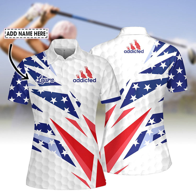 Personalized Name Addicted American Flag Abstract Women Golf Polo Shirt