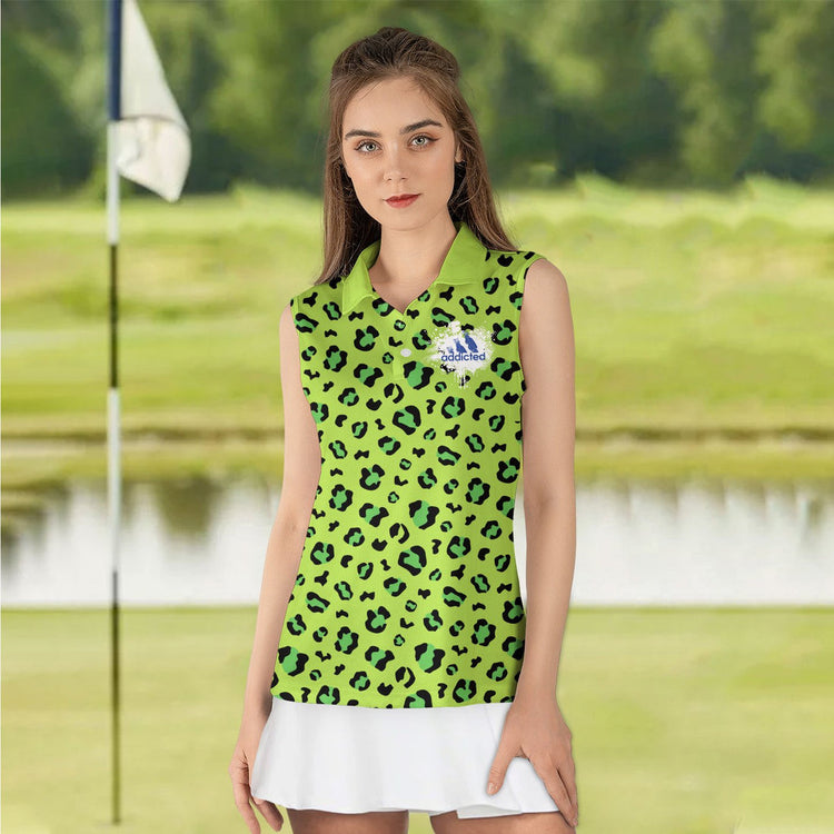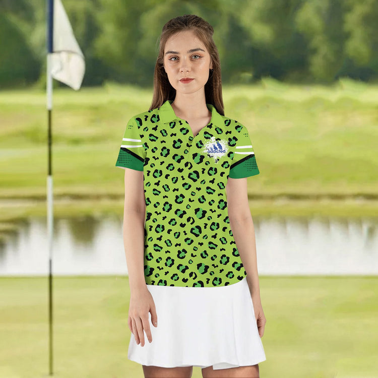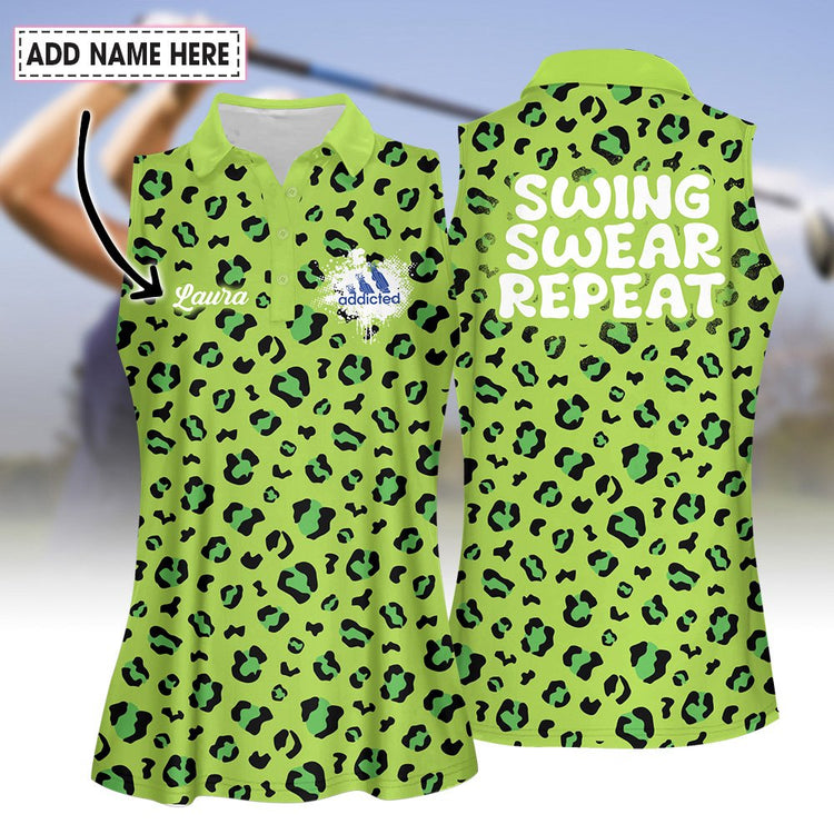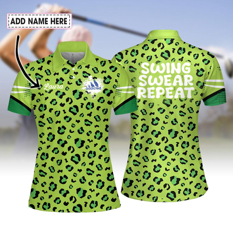 Personalized Name Golf Neon Leopard Addicted Swing Swear Repeat Women Polo Shirt