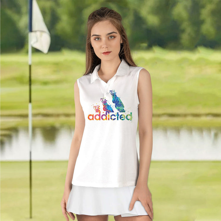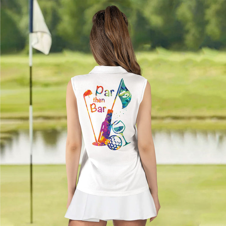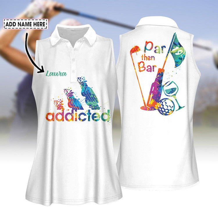 Home Womens Sleeveless Golf Shirts Personalized Name Golf Water Color Par Then Bar Addicted Women Polo Shirt